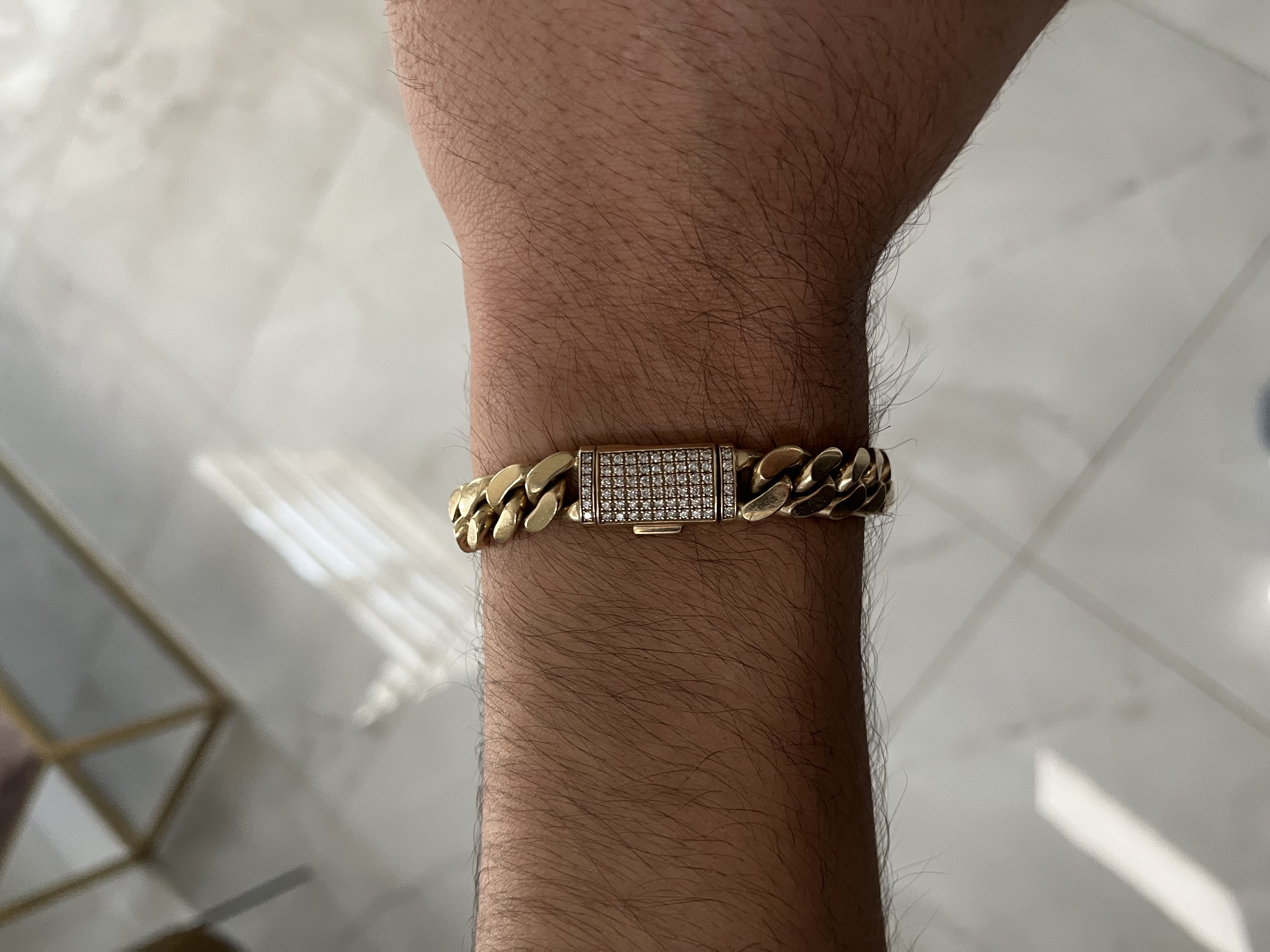 Gold Cuban Link Bracelet with Pave Diamond Clasp