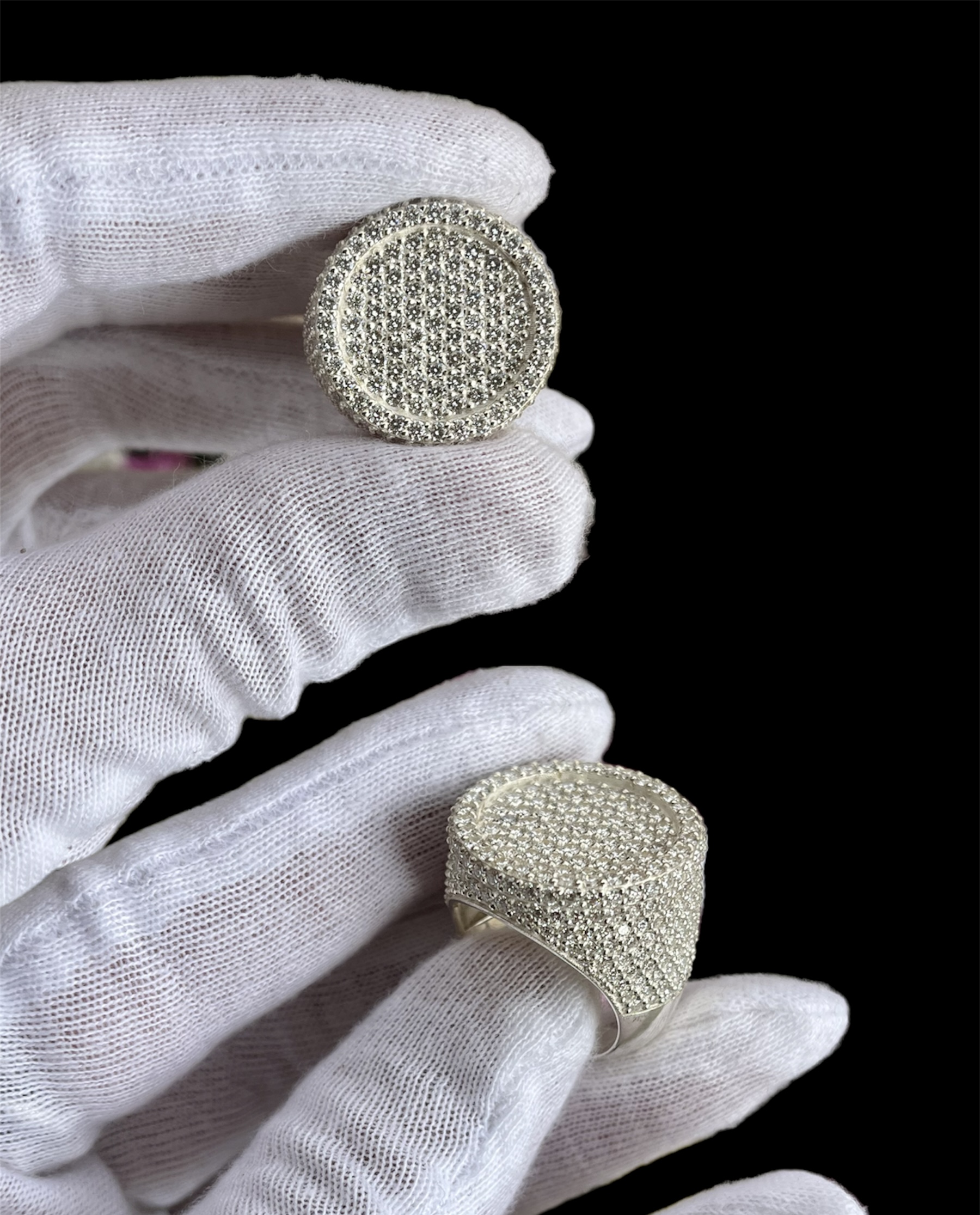 A curated selection of custom pieces from our Toronto studio — each one designed, cast, set, and finished in-house.